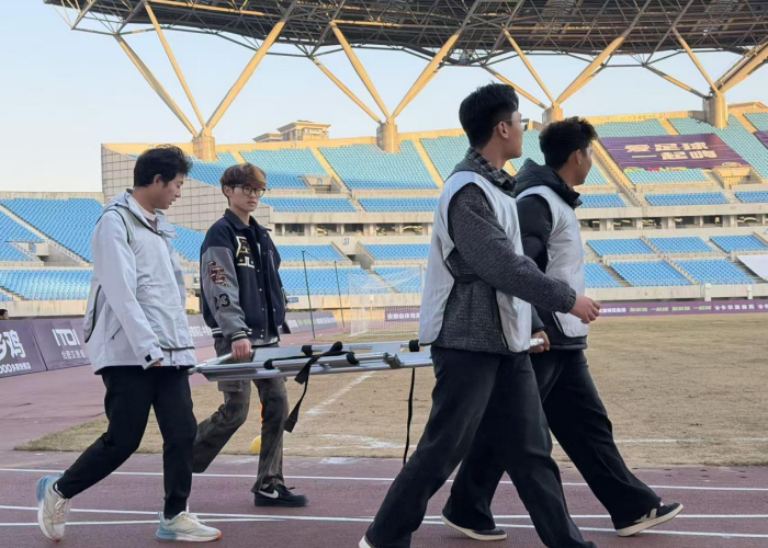 参与救援保障的志愿者张鑫宇同学:“看到球员受伤那刻有点慌,但跟着培训的流程搭手转运,看着担架稳稳送进救护车时,突然懂了‘星青年担当’—— 不是喊口号,是关键时刻能稳稳顶上!”