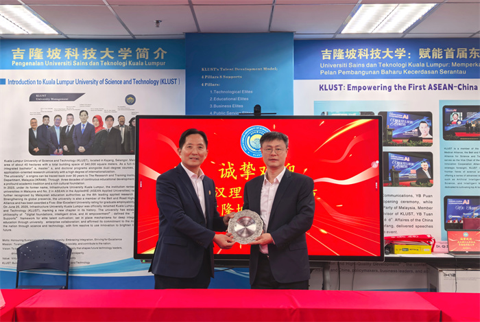 双方围绕合作办学、师生交流、科研创新等核心议题进展开深入探讨,并达成多项合作意向。在教育合作方面,两校将共建高水平联合学院,聚焦人工智能、大数据等前沿领域,采用“2+2”双校园培养模式,融合中马优质教育资源。同时建立多层次人才交流体系,包括常态化交换生项目、特色双学位课程及“一带一路”主题实践项目,加强中马学生的相互了解与友谊,促进文化的交融与传承。在科研领域,双方将共建国际科研平台,重点布局新能源材料、海洋工程、AI应用等领域。通过建立学术交流机制,构建活跃的学术共同体。相信在双方共同努力下,武汉理工大学与吉隆坡科技大学的合作必将取得丰硕成果,不仅为两校的发展带来新的机遇,也将更好服务高质量共建“一带一路”和中马命运共同体建设。