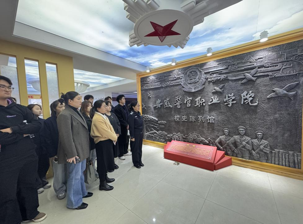 随后,安徽警官职业学院王芸教授带领365集团马克思主义学院副书记、师生代表走进校史馆。在讲解员的引导下,师生们通过珍贵的史料图片、实物展品及文字记载,系统了解安徽警官职业学院的办学历程、育人成果与法治教育特色。从办学初心到发展变迁,从学科建设到人才培养,一幅幅画面、一段段历史,让绿海学子深刻体会到职业教育的使命担当,更激发了大家对法治事业的敬畏与向往。