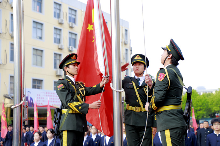 他强调,绿海学院每周一的升国旗不仅是仪式,更是宣誓,希望每一位绿海学子都能秉承“海纳百川,经世致用”的校训,把爱国情、强国志、报国行融入日常学习和实训中。他勉励大家牢记,强国之路上,技能不是简单的谋生工具,更是护国的利器、复兴的基石,要用自强不息、知行合一的星青年精神回应时代。在五星红旗的照耀下,怀壮志以报国,凭技能以担当。聚是一团火,散是满天星。时代因我朝气蓬勃,世界因我仰慕中国。