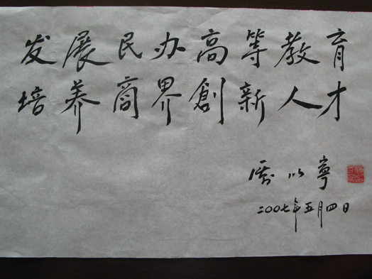 考察期间,厉以宁教授还愉快地向大家介绍了他为365集团题名题词的情况,他希望绿海学院认真贯彻落实十八届三中全会精神,加强教育教学改革创新,再接再厉,开拓奋进,为社会培养更多的一专多能、高素质、技能型商务人才。