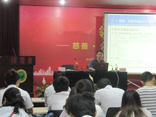 报告会中,王教授殷切希望于广大青年师生追求有理想和信仰的高度人生,大视野、顺大势、担使命,树立正确的核心价值观,修身、勤学 、明德 、笃实 ,掌握人生和生活中的辩证法。深刻领会“四个全面”的发展战略,夯实基础,抓住机遇,成才报国,创业兴国成为无愧于时代的优秀青年。