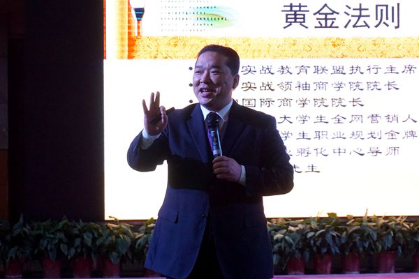 “为什么有的大学生不需要花父母的血汗钱而能完成大学学业?而为什么有的大学生肆意挥霍父母的血汗钱还埋怨不断?”这是下半场全国实战教育联盟执行主席、21世纪大学生职业规划金牌讲师、大学生创业孵化中心导师刘国庆作的《21世纪大学生成功的黄金法则》辅导报告中的前两句话,引起在场同学们的高度兴趣。他认为,如何做一名优秀成功的大学生,首先应该学会微笑,点头,掌声是一个人走向成功的催化剂。沟通时要掌握情绪,场景,环境这几个关键因素。其实成功人与失败人最本质的区别是思维模式不一样。他和同学们分享了环境决定思维、思维决定行为、行为决定习惯、习惯决定性格、性格决定成功。刘国庆的报告折射出许多人生哲理,不时与同学们就有关成功话题作互动,现场多次掌声雷动。