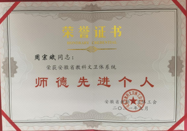 把广大教职工特别是女职工的权益纳入学院工会整体工作统筹安排和部署中,积极做到年度健康体检,“三八节”、“教师节”、元旦春节送温暖等活动。这些工作均得到了学院党政、工会的关心支持。一年来,我院工会委员会在全省教科文卫体系统荣获多项荣誉,先后荣获庆祝中国共产党成立100周年教职工“四史”知识竞赛先进单位,周宗斌同志被授予安徽省教科文卫体系统“师德先进个人”称号。“七一”和教师节前后还分别受到了安徽省教科文卫体工会的其他表彰。这些荣誉的取得,也无疑为助力我院高水平职业大学建设增添了亮点。(文图/任婷婷 付杰 审核/周宗斌)