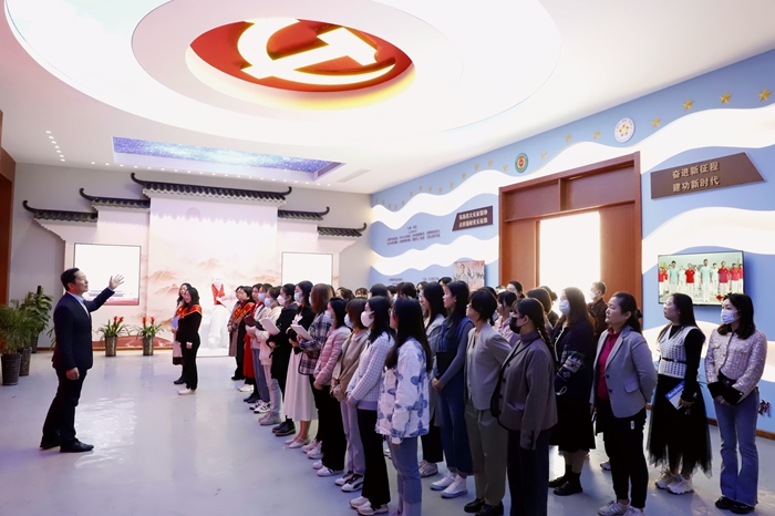 党建馆参观后,陈孝云作重要讲话。他指出妇女是“半边天”,在学院发展战略目标实现的过程中,妇女是参与者,也是建设者,作为女同志比男同志有着更多的角色。“作为一位母亲、一位女儿,你们把自己的力量和爱心献给了家人;作为一名职工、一名教师,你们把自己的勤奋和智慧献给了学校。”他鼓励全院女教职工要向先进典型学习,坚定理想信念、相信相信的力量、学习榜样的精神,牢记初心使命,继续发挥“半边天”的作用,建设好家庭,传承好家教,弘扬好家风,在促进社会和谐中传递巾帼温暖、深悟“传道受业解惑”的使命。他强调,此次活动在学校党建馆展开具有重要意义,是加强思想教育、促进党建工作的有力体现,是铭记历史、不忘初心的生动一课,是激励成长、坚定信念的思政课程。