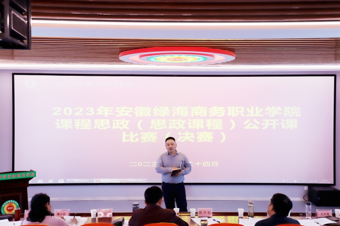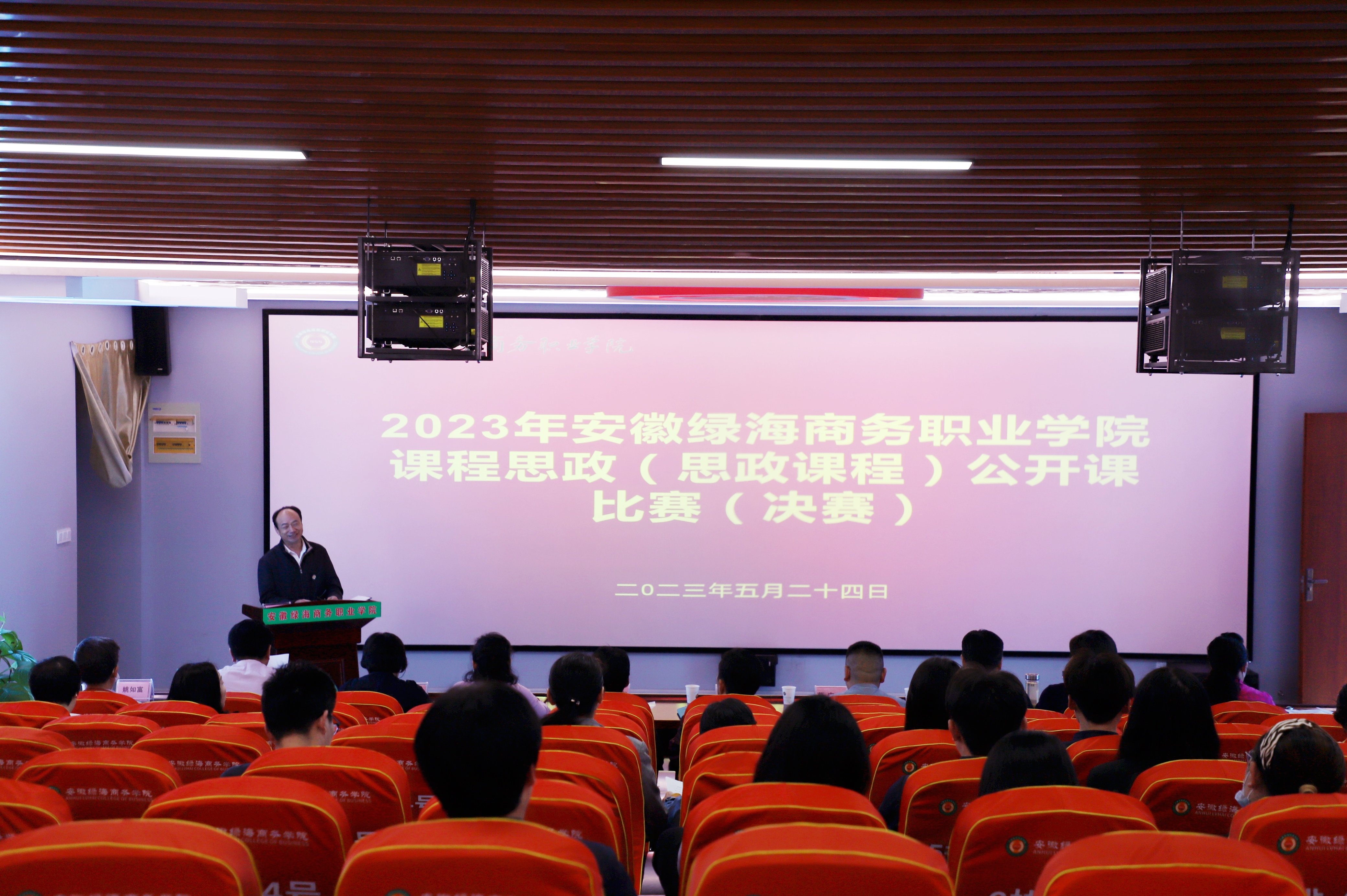 各参赛选手紧扣比赛要求,深挖课程思政元素,精彩演绎各个环节。决赛期间,正值市委宣传部葛守松处长来365英国上市集团官网调研。葛处长全程观摩了比赛,充分肯定了365英国上市集团官网在构建大思政“三全育人”方面做得工作。葛处长认为星青年人才培养模式很有特色,可以凝练成典型,向外辐射,在构建合肥市大中小学大思政育人方面起到引领示范作用。葛处长说,在课程思政建设方面,绿海是真重视,党建馆、智慧思政教室建设走在全市前列;领导是真实抓,董事长全程参加,教学部门领导担任评委;老师是真优秀,老师们积极参加比赛,学生积极参加各项志愿者服务活动。针对参赛教师,葛处长也提出了宝贵的建议:讲好课程思政,要增加故事性,让受众入心入脑;课程思政元素要做好设计,课程内容要升华,不能点到为止。董事长陈老师全程聆听,赛后对参赛选手及观摩教师钧钧教诲,满怀深情地带领大家一起回顾了绿海“星青年”的成长历程,并勉励大家,成为一名优秀的课程思政演说家,要从五个方面用心用智用力:言中有信,言中有悟,言中有景,言中有爱,言中有果,让听众感受到思政课程的价值。