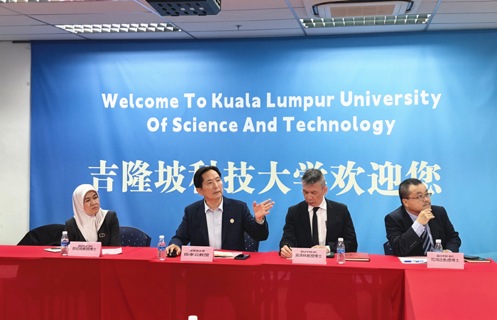 执行校长吴泽林在讲话时,首先对来访嘉宾表示热烈欢迎。他表示,吉隆坡建设大学正式更名为吉隆坡科技大学,明确了以“数字筑基、智能驱动、AI赋能”办学理念,确定了产教深度融合、校企联合办学体制机制,加强与全球行业领袖的合作,积极走在趋势前沿。目前学校共开设28个本科专业,16个硕士专业,10个博士专业,正朝着办好高质量的东盟一流科技大学而努力奋进!