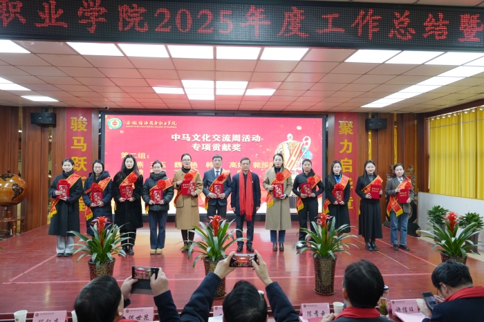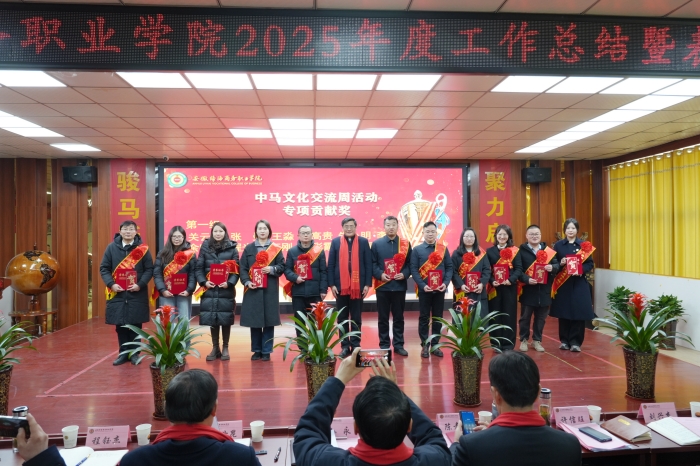 他指出,过去一年,绿海学院紧扣“万物向新、蓄力启航”总基调,立足职业教育高质量发展核心任务,勇担“职教出海”时代使命,在绿海与吉科大两校联动、双向赋能的道路上步履铿锵,交出了一份沉甸甸、亮闪闪的优异答卷。在本土化建设方面,绿海学院依托省级“双高”平台构建“一体两翼五重点”战略体系,实现三大标志性突破:高职院校“活力指数排行榜”进步榜首位、安徽省职业院校技能大赛斩获三项一等奖、数字商贸学院通过直播赋能带动农产品销售额突破千万元大关。与安徽广电传媒共建产业学院、冲刺国家级教学成果奖等举措,推动产教融合向纵深发展。在国际化办学方面,吉隆坡科技大学完成更名后确立“数字筑基、智能驱动、AI赋能”办学理念,打造了鲁班工坊、东盟—中国人工智能大会等一些列品牌项目,与华为、奇瑞等行业领军企业共建高水平产教融合实践平台,北京办事处高效运转,中国职教标准在东盟落地生根。他提到,其个人获评“徽商国际人物”等奖项,更是社会各界对两校国际化办学的高度认可与肯定。