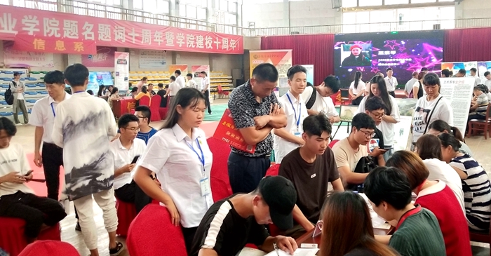 迎新不再仅仅是入学报到走流程,学院精心准备了办学成果展,以全新的姿态迎接新生。校园主干道橱窗内的学院概况、校园文化、系部介绍,吸引了新生及家长的驻足观看。各系报到处也推出了专业介绍和成果展示,艺术系学生的作品秀,引来不少学生及家长点赞。