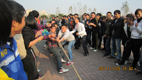 “压下身体,半蹲着,抓紧绳,脚挨脚”这样的声音不停地在赛场上空响起。随着裁判一声哨响,双方展开激烈对抗,绳索伴随队员们的脚步和后倾的身躯左右晃动。参赛队员卯足了劲,齐呼口号奋力拖曳,象征胜利的红绳也在双方的场地间来回摆动。观战同学的心弦也随绳索的晃动而紧绷,加油声响彻全场。最终,继教部和外语系分别获得男子和女子团体第一名。