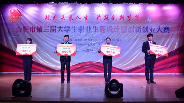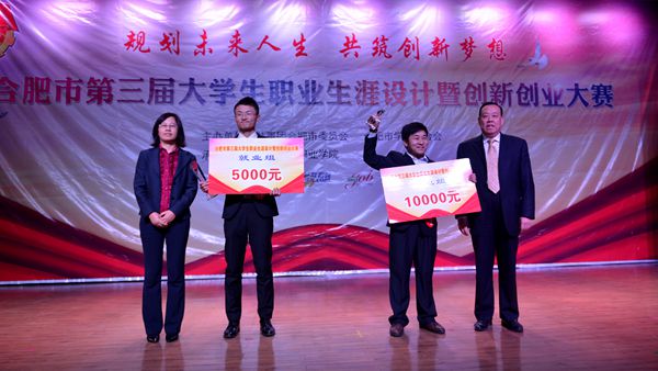 12月21日下午,合肥市第三届大学生职业生涯设计暨创新创业大赛决赛在合肥财经职业学院举行。市人大副主任、党组副书记宋家伟,市政府副市长吴春梅,市政协副主席奚芝英,团省委学校部部长曹隽,市人社局局长朱正跃,团市委书记吴娅娟、市教育局副局长唐文水,团市委副书记陆杨等领导出席总决赛。来自各直属院校的领导、团委书记、学生会主席及学生代表近600人参加此次活动。