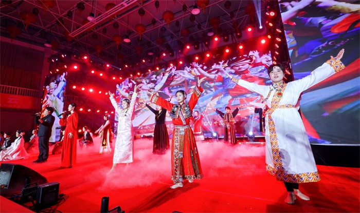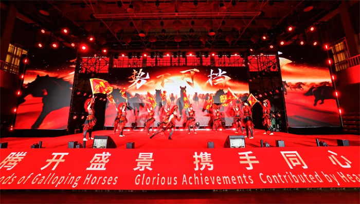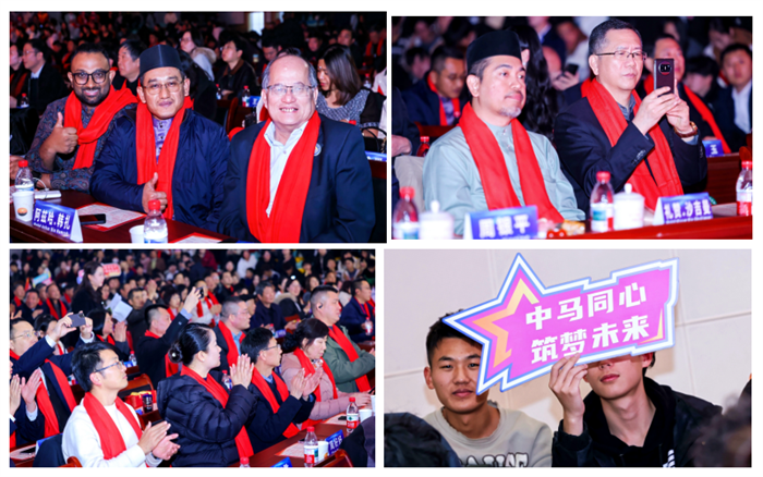 整场晚会以“骏马迎春・四海同辉”“大同世界・文明互鉴”“绿海扬帆・出海添彩”“同心致远・共赴辉煌”四大篇章徐徐铺展,节目形式涵盖歌曲、舞蹈、情景剧、花艺、武术等,中马文化元素交相辉映,尽显两校师生的卓越才艺与昂扬风采。